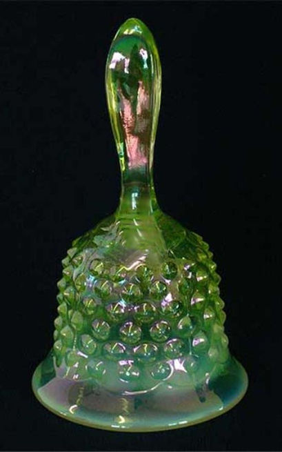 Hobnail Bell - vaseline Opal- marked fenton