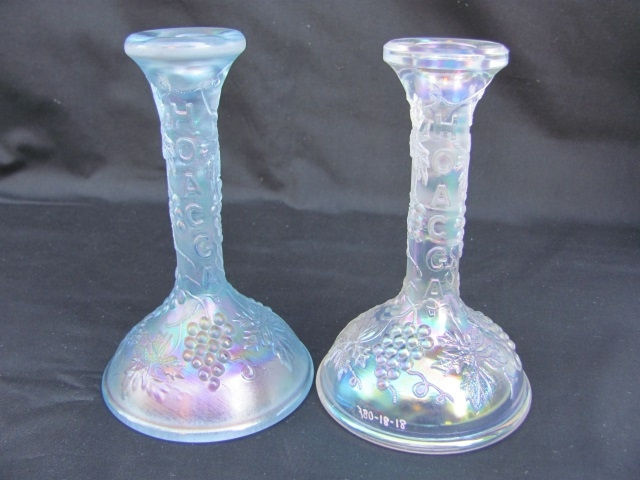 Fenton, HOACGA candlesticks, ice blue and white