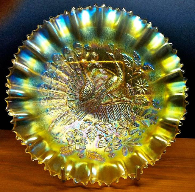 Peacocks on the Fence, STIPPLED pie crust edge, pastel marigold